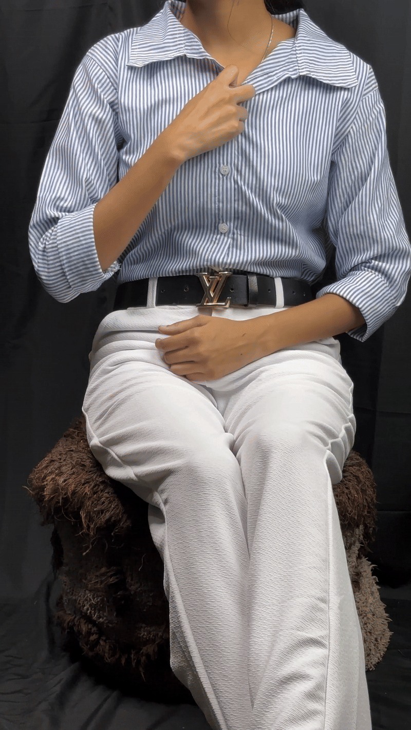This striped Oxford shirt pays homage to timeless preppy aesthetics. Whether tucked into trousers or worn loose over jeans, it effortlessly complements your capsule wardrobe — offering a balance of tradition and trend