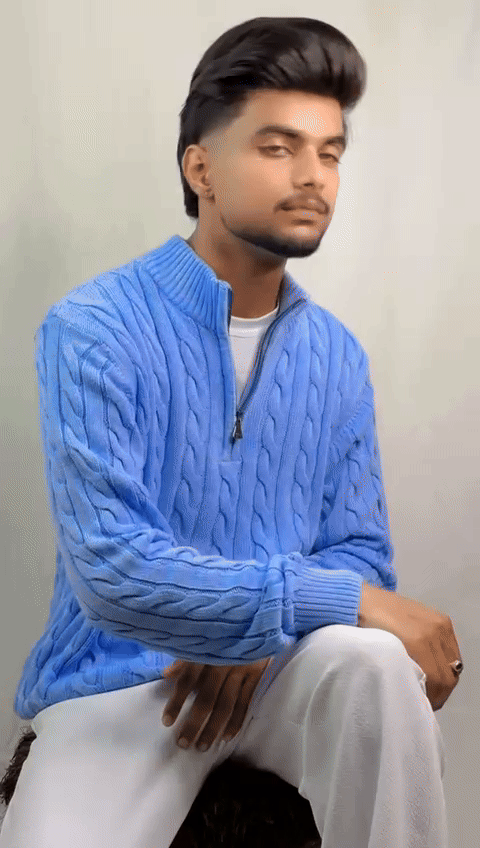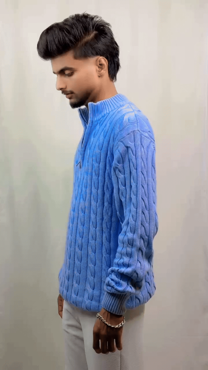 Crafted in a soft sky-blue cable knit, the Belgrave Quarter-Zip embodies quiet luxury with its timeless design. The ribbed collar and subtle zip closure add a touch of sophistication, making it equally at home over a crisp shirt or layered beneath a tailored jacket. A wardrobe essential for those who value understated elegance and heritage-inspired style.